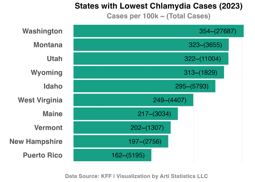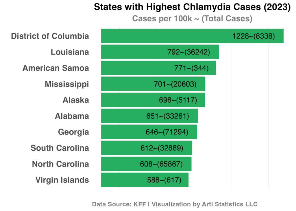 • Washington D.C. had the highest chlamydia number of cases in the nation in 2023